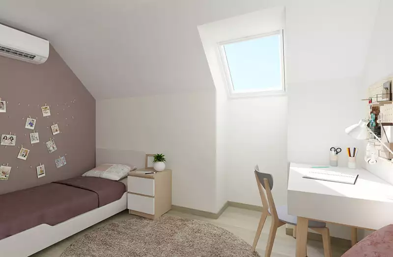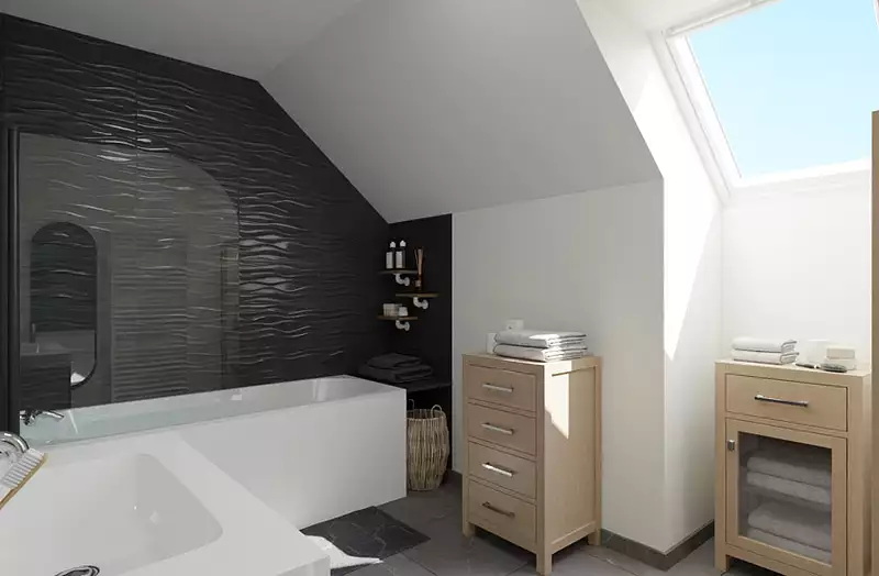 Les menuiseries en PVC sont proposées en 4 coloris au choix. La toiture est réalisée en tuiles plates rainurées. Côté façades cette maison dispose de débords de toit en corniches ravalées, de gouttières et descentes de pluie en zinc. Plusieurs couleurs d'enduit extérieur sont proposés. 2 robinets de puisage, 2 prises électriques extérieures et au minimum 4 points lumineux extérieurs sont également prévus.