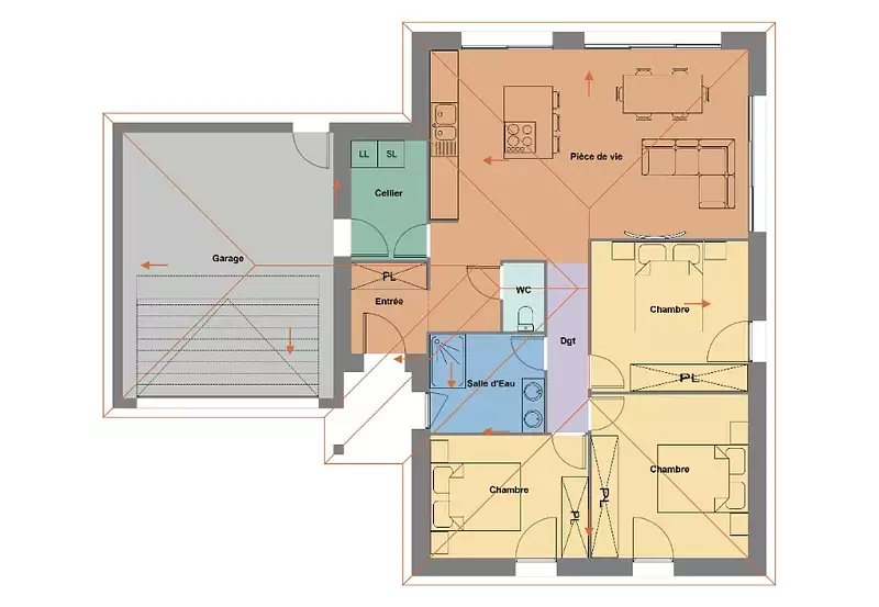 Proche de Nantes - En vente à Sainte-Luce-sur-Loire (44980) : maison neuve 4 pièces de 90 m² sur un terrain de 650 m². Son intérieur se divise en trois chambres, une cuisine et une salle de bains.