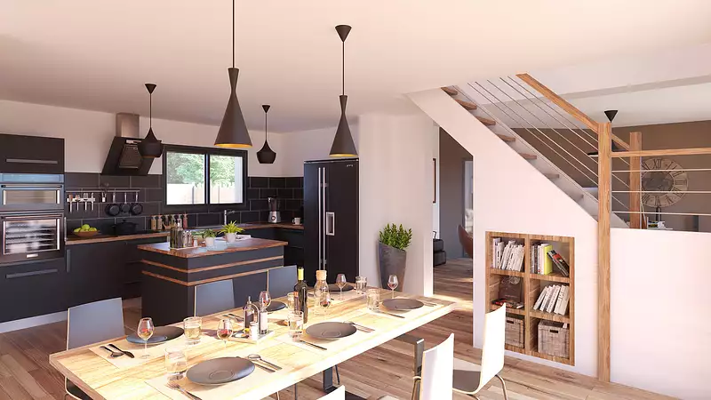 Maison contemporaine spacieuse et lumineuse – à personnaliser selon vos envies ! Laissez-vous séduire par cette maison moderne aux volumes généreux, pensée pour allier confort et fonctionnalité. Avec 3 chambres, une suite parentale avec dressing et salle d’eau, un salon-séjour spacieux, une cuisine ouverte, et même une salle de jeux, chaque espace est conçu pour s’adapter à votre mode de vie. Une architecture élégante et des finitions personnalisables pour un projet à votre image !. Pour un confort optimal et conforme à la RE2025, cette maison dispose d’une PAC avec plancher chauffant, radiateurs à l’étage et volets roulants électriques. À noter : Le prix indiqué exclut les revêtements de sol des chambres, la cuisine aménagée, la peinture, la décoration, les raccordements, les frais de notaire et l’assurance dommages-ouvrage. (Piscine non contractuelle, non comprise dans le prix). Contactez-nous dès aujourd’hui pour concrétiser votre projet et façonner votre futur chez-vous !.
