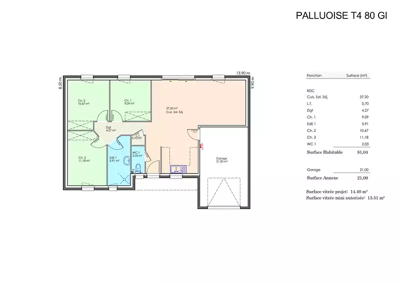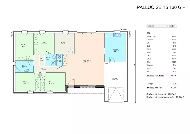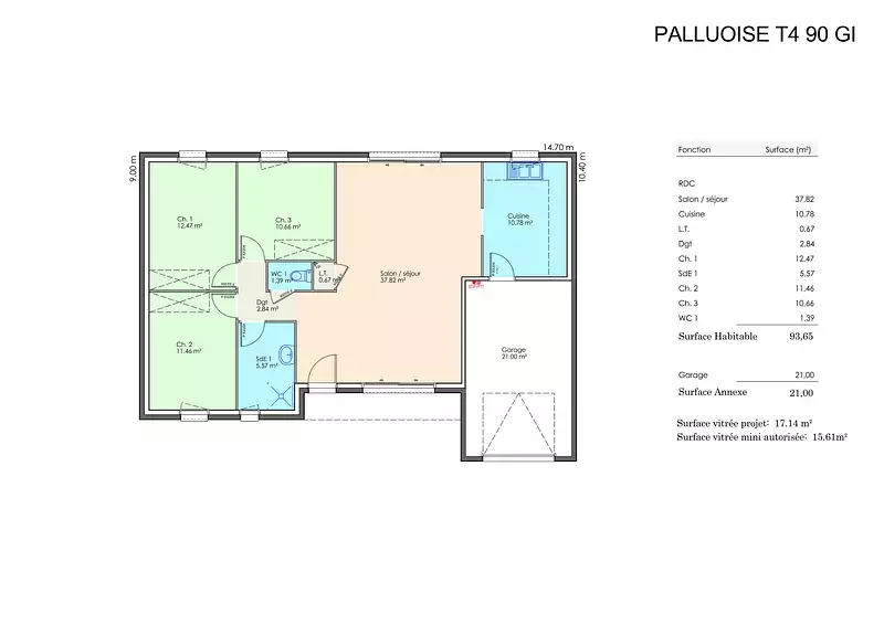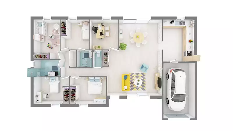 La Palluoise est un charmant plain-pied traditionnel, conçu pour maximiser la luminosité grâce à ses baies coulissantes. Le garage intégré ajoute une touche de praticité, tandis que l'intérieur spacieux et bien agencé vous permettra de profiter pleinement de chaque mètre carré.
