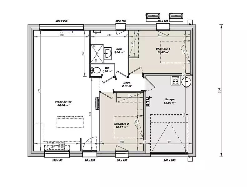 Proposée par MAISONS TRADILIGNES – 3 pièces - 2 chambres - terrain 402 m²