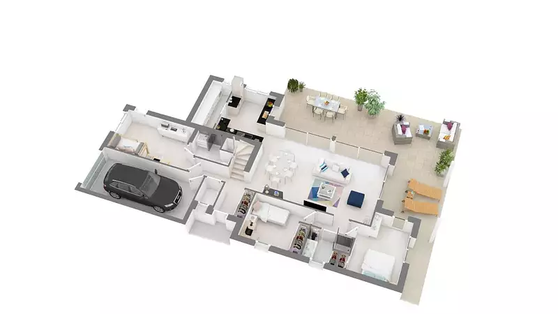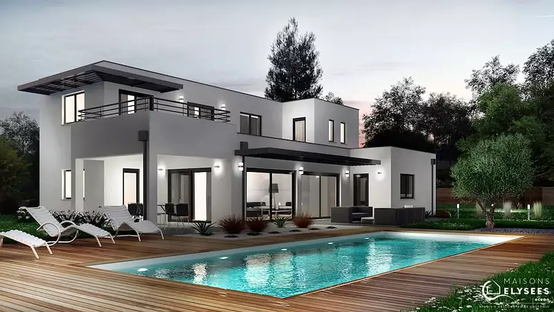 Sur ce terrain, nous vous proposons cette maison neuve, la Palmyre, conçue par Elysees Ocean, le constructeur aux meilleurs avis clients de la profession. Avec une surface généreuse de 185 m², cette maison contemporaine est idéale pour accueillir une famille nombreuse.