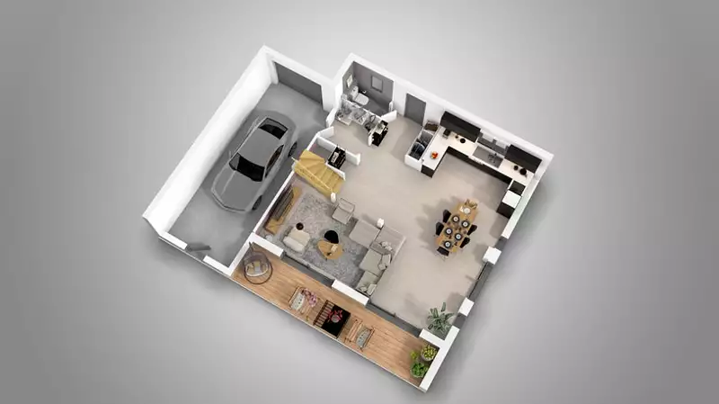 La Natimoon est un modèle de maison contemporaine à étage et à l'esthétisme sobre et épuré qui se distingue au RDC par son grand espace de vie laissant libre court à votre imagination pour la décoration.