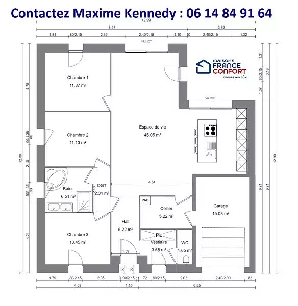 Proposée par MAISONS FRANCE CONFORT – 4 pièces - 3 chambres - terrain 629 m²