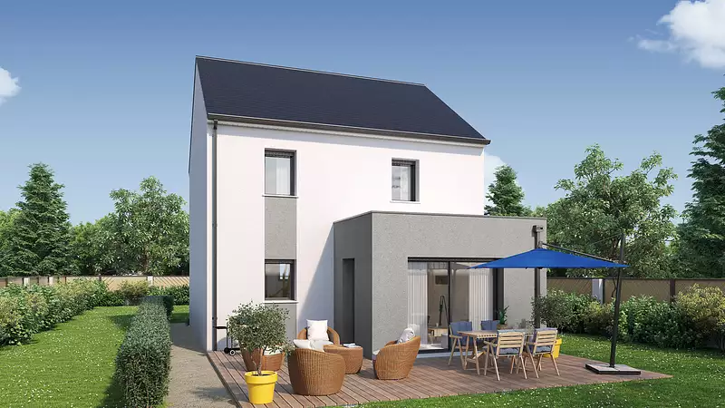 Une maison idéale pour les petits terrains, sans compromis sur l’espace ! Grâce à son agencement optimisé, cette maison s’adapte parfaitement aux terrains de taille réduite tout en offrant des volumes généreux et un confort absolu. Le rez-de-chaussée accueille une pièce de vie ouverte et lumineuse, pensée pour favoriser la convivialité. Son agencement fluide entre le salon, la salle à manger et la cuisine permet un cadre chaleureux et moderne. Un cellier discret ajoute une solution de rangement pratique au quotidien. À l’étage, trois chambres confortables assurent à chacun son propre espace, tandis qu’une salle de bain fonctionnelle et des WC indépendants garantissent un confort optimal pour toute la famille. Un design contemporain et intelligent, parfait pour maximiser l’espace même sur une petite parcelle !. Pour vous assurer un confort de vie optimal et en conformité avec la RE2025, nous avons opté pour un système de chauffage par pompe à chaleur (PAC) avec plancher chauffant au rez-de-chaussée et radiateurs à l’étage. Le logement est également équipé de volets roulants électriques. Prix hors fourniture et pose : des appareils sanitaires (sauf système de chauffage et d'eau chaude sanitaire), du carrelage et de la faïence, des revêtements de sol dans les chambres. Hors décoration et aménagement intérieur et peinture. Hors raccordements, frais de notaire et dommage ouvrage. .