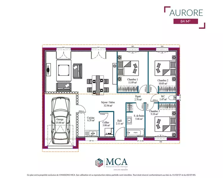Vous serez séduits par ses volumes optimisés, son garage attenant et communiquant avec la cuisine et l'emplacement placard prévu dans chaque chambre.