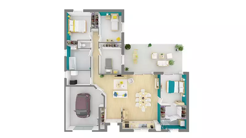 Nous vous proposons cette maison neuve, la Diamant, d'une surface de 96 m², comprenant 3 chambres et 4 pièces. Cette charmante demeure se distingue par son design en L offrant une configuration optimale et une belle luminosité.