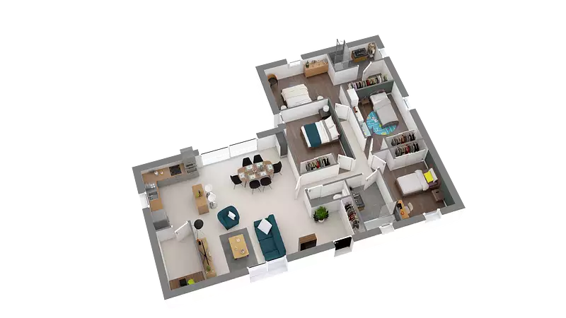 Fonctionnelle et spacieuse, cette maison de plain-pied vous propose un bel espace de vie lumineux et traversant. Sa cuisine est ouverte sur le séjour et a un accès direct au cellier. Son espace nuit est composé de trois belles chambres avec rangements. La maison comporte deux salles de bains, des wc séparés et un bureau avec rangements. Pour vous assurer un confort de vie et conformèment à la RE2025, nous avons chosi un mode de chauffage par PAC + plancher chauffant, volets roulants électriques, Prix hors fourniture et pose : des appareils sanitaires (sauf système de chauffage et d'eau chaude sanitaire), du carrelage et de la faïence, des revêtements de sol dans les chambres. Hors décoration et aménagement intérieur et peinture. Hors raccordements, frais de notaire et dommage ouvrage.