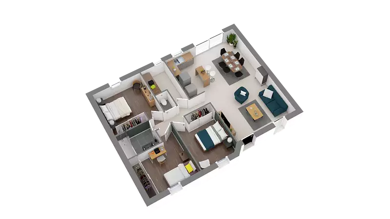 Charmante maison de plain-pied spacieuse et stylée. Son entrée est couverte par un porche, qui ouvre sur la pièce de vie de 40 m² environ. L’espace jour et l’espace nuit ont été optimisés par notre bureau d’études. Côté nuit, 3 chambres avec rangement, une salle de bains. Ses jeux d'enduits personnalisables sauront vous séduirePour vous assurer un confort de vie et conformèment à la RE2025, nous avons chosi un mode de chauffage par PAC + plancher chauffant, volets roulants électriques, Prix hors fourniture et pose : des appareils sanitaires (sauf système de chauffage et d'eau chaude sanitaire), du carrelage et de la faïence, des revêtements de sol dans les chambres. Hors décoration et aménagement intérieur et peinture. Hors raccordements, frais de notaire et dommage ouvrage.