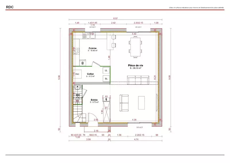 Pièce de Vie Lumineuse : Grand séjour de 36 m², idéal pour des moments conviviaux.
