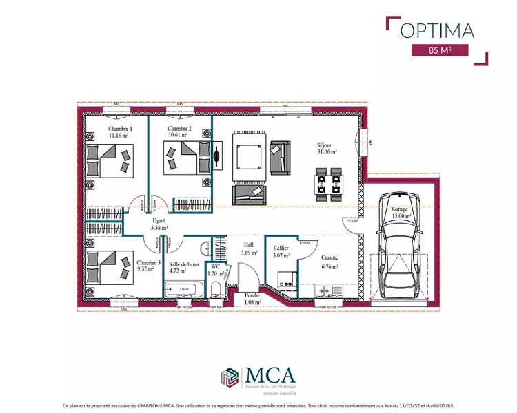 Ce modèle saura vous plaire grâce à son agencement idéalement pensé pour votre confort de vie, et l'optimisation des espaces.