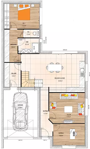 Proposée par MAISONS BERNARD JAMBERT – 7 pièces - 4 chambres - terrain 407 m²