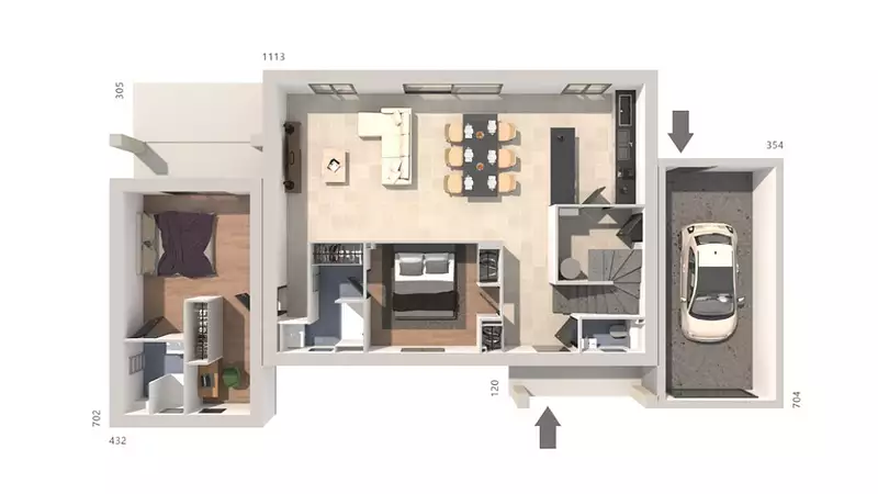 SANS GARAGE : possibilité de l'ajouter OU le faire réaliser plus tard.