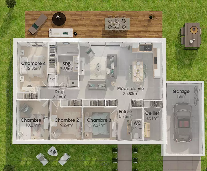 Proposée par MAISONS BALENCY – 5 pièces - 4 chambres - terrain 300 m²