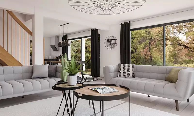 Une pièce de vie conviviale et baignée de lumière, pensée pour accueillir une cuisine ouverte