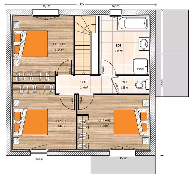 - Surface : 105 m²