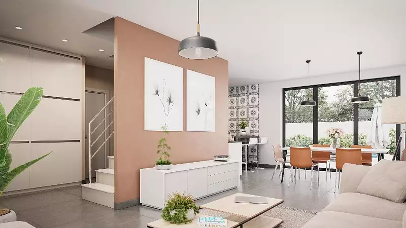 Terrain proposé par un partenaire foncier selon disponibilités et autorisation de publicité au prix de 208 000 €. Hors droit d'enregistrement et frais de notaire. Terrain + Maison proposés au prix de 340 500 € (Hors branchements et raccordements, papiers peints, peintures, revêtement de sol dans les chambres. Tarif modifiable sans préavis). Etiquette énergie : A. Différents modèles disponibles pour ce terrain.