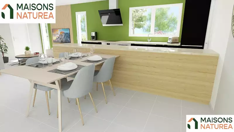 Exclusivité Maisons Naturéa avec ce terrain de 1106 m² proche d'échangeurs autoroutier, au calme et idéalement exposé pour réaliser ensemble votre projet de construction Nous vous proposons cette maison traditionnelle avec une exposition optimale grâce à son salon/séjour traversant de plus de 40 m² et sa forme en U. Accès sur celle-ci par un hall d'entrée équipé d'un vestiaire de rangement et d'un WC indépendant. Côté pratique, vous disposez d'un bureau pour le télétravail ou vos activités de loisirs Côté nuit, vous trouverez une partie enfant avec 2 chambres et leur salle de bain équipé d'une douche et un meuble vasque, ainsi que côté parent, une suite parentale de plus de 20 m² avec dressing et salle de bain Le plus : un local extérieur pour votre future piscine Contactez Maisons Naturéa pour une étude gratuite et personnalisée au 02 28 19 62 78 ou sur www.maisonsnaturea.fr