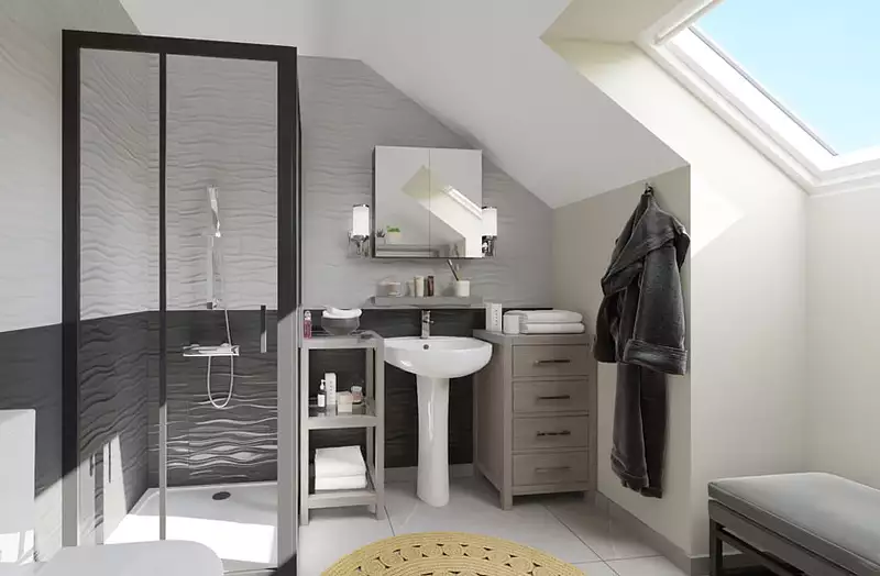 Cette maison à combles aménagés d'une surface totale de 76 m2 est construite sur vide sanitaire. Elle propose au rez-de-chaussée un séjour-cuisine de 34 m2, un WC et d'un garage intégré de plus de 14 m2 donnant accès à l'entrée de la maison. L'espace nuit se situe à l'étage. Il se compose de 3 chambres de plus de 9 m2 et d'une salle d'eau avec possibilité d'installer un WC. A noter, le garage est compatible avec un futur aménagement intérieur (hors point d'eau). Les menuiseries sont en PVC de couleur blanche, les volets sont quant à eux en bois prépeints en blanc. Plusieurs couleurs d'enduit extérieur sont proposées.