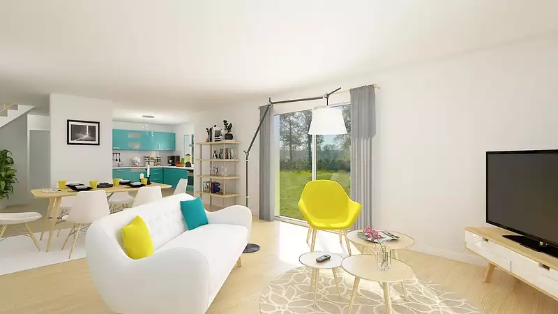 Inspirée du charme provençal, la ""Barentine"" présente une architecture cohérente et attrayante. Son design extérieur peut être personnalisé avec un enduit bicolore, ajoutant une touche d'élégance et de distinction. Que vous optiez pour une toiture à 2 ou 4 pans, cette maison vous propose raffinement et confort.