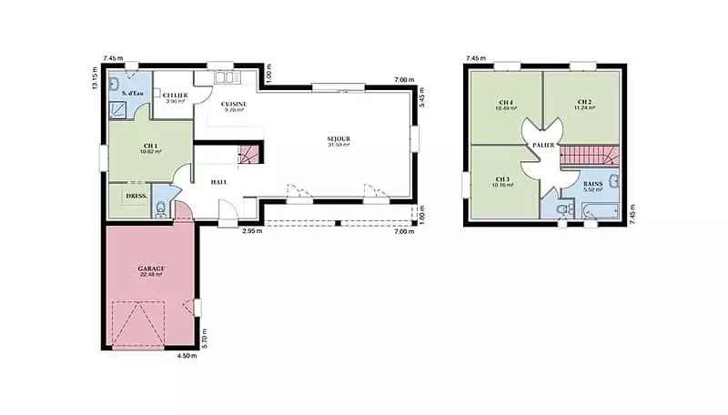 La ""Barentine"" comprend 3 chambres spacieuses, garantissant confort et intimité à chaque membre de la famille. Au total, la maison se compose de 4 pièces, pensées pour maximiser l'espace et la luminosité. L'une des caractéristiques remarquables de ce modèle est son garage intégré, assurant une transition fluide entre l'espace de vie et l'espace de stationnement, tout en offrant un espace de rangement supplémentaire très pratique.