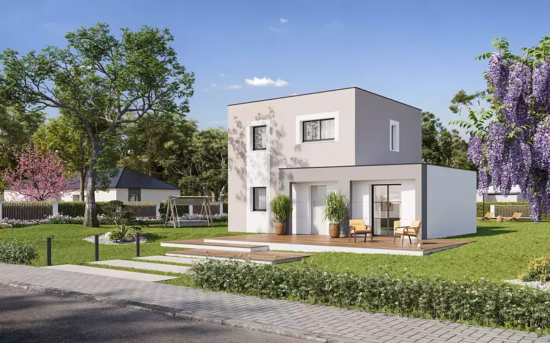 Avec ses 90,63 m² habitables, cette maison séduit par son architecture cubique moderne et élégante. Ses lignes épurées et ses larges ouvertures mettent l'accent sur la lumière naturelle et la connexion avec l'extérieur.