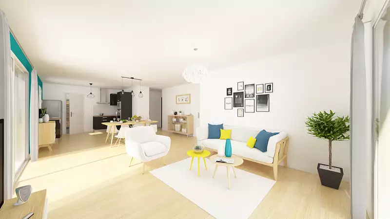 Aucune place de perdue pour cette maison de plain-pied familiale et fonctionnelle qui vous propose un très bel espace de vie lumineux avec une grande baie vitrée donnant sur le jardin. Sa cuisine est ouverte sur le séjour et dispose d'un accès direct au cellier, et au garage intégré. Du côté de l'espace nuit quatre chambres avec rangements, d'une salle de bains et de wc séparés. Pour vous assurer un confort de vie et conformèment à la RE2025, nous avons chosi un mode de chauffage par PAC + plancher chauffant, volets roulants électriques, Prix hors fourniture et pose : des appareils sanitaires (sauf système de chauffage et d'eau chaude sanitaire), du carrelage et de la faïence, des revêtements de sol dans les chambres. Hors décoration et aménagement intérieur et peinture. Hors raccordements, frais de notaire et dommage ouvrage.