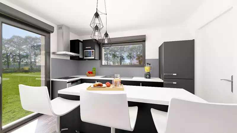 Prix indicatif incluant maison + terrain (hors frais de notaire, raccordements, taxes, aménagements extérieurs, peintures, cuisine…)