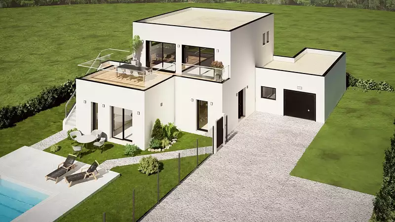 Maisons Arlogis Lyon Est vous propose des maisons 100% sur mesure. Visuel d'illustration. Le modèle est totalement adaptable à vos envies et besoins et personnalisable grâce à de nombreuses options de finition. Nous consulter pour plus d’informations. Le prix affiché comprend le coût du terrain et de la construction hors frais de notaire et taxes. Les annonces de terrains constructibles sont sélectionnées auprès de nos partenaires fonciers selon disponibilités et autorisation de publicité en vue de construire une maison neuve avec un Contrat de Construction de Maison Individuelle dans le cadre de la loi du 19/12/1990. Ces derniers sont soit des professionnels dûment habilités à la transaction immobilière, soit des particuliers. Les terrains sélectionnés sont disponibles à la date de la première parution de l’annonce. En aucun cas Maisons ARLOGIS ou ses collaborateurs ne sont propriétaires des terrains, ne jouent un rôle d’intermédiation ou de négociation sur la transaction et ne participent à la vente. Prix indiqués par nos partenaires fonciers.