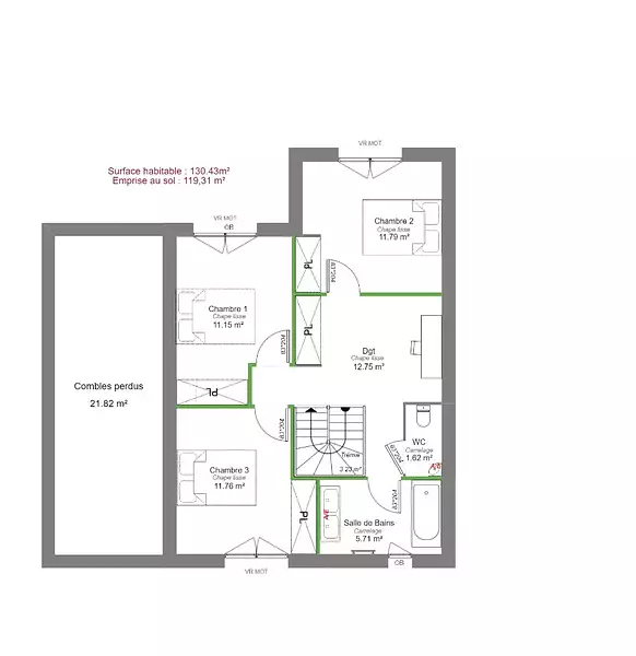 Proposée par CONSTRUCTIONS IDEALE DEMEURE – 5 pièces - 4 chambres - terrain 530 m²
