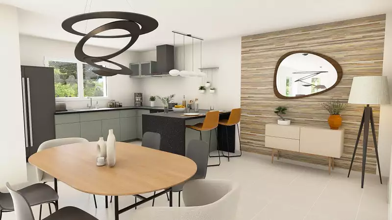 Terrain proposé par un partenaire foncier selon disponibilités et autorisation de publicité au prix de 94 200 €. Hors droit d'enregistrement et frais de notaire. Maison proposée, avec un contrat de construction de maison individuelle, dans le cadre de la loi du 19/12/1990, au prix de 209 800 € (Hors branchements et raccordements, papiers peints, peintures, revêtement de sol dans les chambres, qui sont chiffrés dans les travaux qui restent à charge du client. Tarif modifiable sans préavis). Étiquette énergie : A. Différents modèles disponibles pour ce terrain. Assurances et garanties du constructeur comprises (RC professionnelle, décennale, dommage ouvrage).