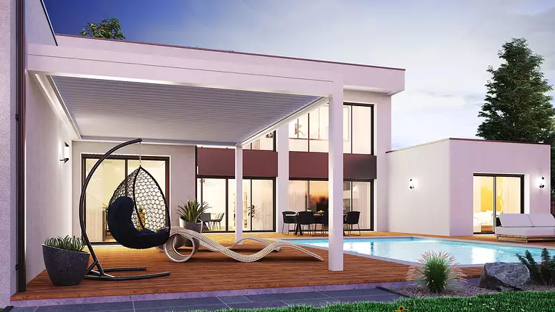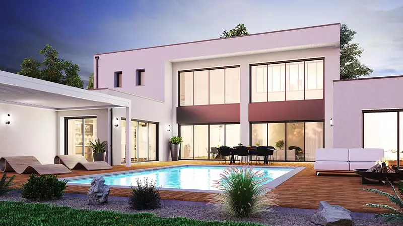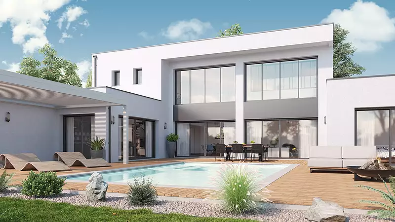 Cette maison contemporaine séduit par son architecture c ubique et toit plat, véritables emblèmes d'un style moderne et affirmé. Le rez-de-chaussée offre une vaste pièce de vie ouverte sur l'extérieur, une suite parentale avec dressing et salle de bains, un bureau, une salle de sport, ainsi qu'une buanderie, un cellier et un garage pour plus de praticité. A l'étage, trois chambres et une salle d'eau complètent cet agencement harmonieux. Ce projet, entièrement personnalisable, allie design, espace et bien-être familial pour s'adapter à votre mode de vie. Pour vous assurer un confort de vie et conformément à la RE2025, nous avons choisi un mode de chauffage par PAC + plancher chauffant, volets roulants électriques. Prix hors décoration, hors revêtement de sol dans les chambres, hors frais de notaire, raccordements, dommage ouvrage. (Piscine non contractuelle et non comprise dans le prix. ).