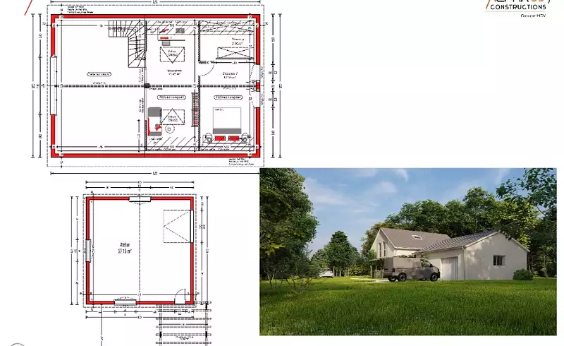 Proposée par ALPHA CONSTRUCTIONS – 3 pièces - 2 chambres - terrain 2 057 m²