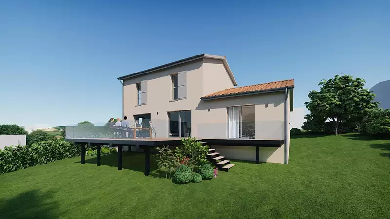 Le modèle est totalement adaptable à vos envies et besoins et personnalisable grâce à de nombreuses options de finition. Nous consulter pour plus d'informations. Le prix affiché comprend le coût du terrain et de la construction hors frais de notaire et taxes. Les annonces de terrains constructibles sont sélectionnées auprès de nos partenaires fonciers selon disponibilités et autorisation de publicité en vue de construire une maison neuve avec un Contrat de Construction de Maison Individuelle dans le cadre de la loi du 19/12/1990. Ces derniers sont soit des professionnels dûment habilités à la transaction immobilière, soit des particuliers. Les terrains sélectionnés sont disponibles à la date de la première parution de l'annonce. En aucun cas Maisons ARLOGIS ou ses collaborateurs ne sont propriétaires des terrains, ne jouent un rôle d'intermédiation ou de négociation sur la transaction et ne participent à la vente. Prix indiqués par nos partenaires fonciers. Visuel d'illustration. Le modèle est totalement adaptable à vos envies et besoins et personnalisable grâce à de nombreuses options de finition. Nous consulter pour plus d’informations. Le prix affiché comprend le coût du terrain et de la construction hors frais de notaire et taxes. Les annonces de terrains constructibles sont sélectionnées auprès de nos partenaires fonciers selon disponibilités et autorisation de publicité en vue de construire une maison neuve avec un Contrat de Construction de Maison Individuelle dans le cadre de la loi du 19/12/1990. Ces derniers sont soit des professionnels dûment habilités à la transaction immobilière, soit des particuliers. Les terrains sélectionnés sont disponibles à la date de la première parution de l’annonce. En aucun cas Maisons ARLOGIS ou ses collaborateurs ne sont propriétaires des terrains, ne jouent un rôle d’intermédiation ou de négociation sur la transaction et ne participent à la vente. Prix indiqués par nos partenaires fonciers.