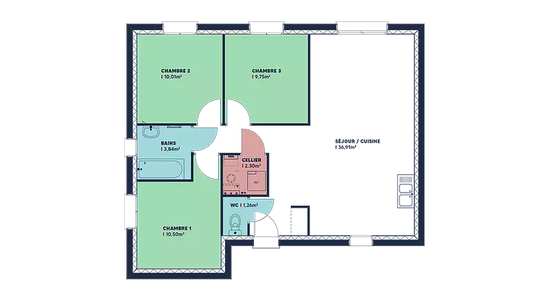 Sur ce terrain, nous vous proposons cette maison neuve : la Focus Tiny city. Idéale pour les petits budgets, cette maison de 74 m² est aussi bien équipée que l’ensemble de nos modèles. Conçue par Babeau-Seguin, constructeur offrant le meilleur rapport qualité/prix du marché, cette maison est une version abordable et compacte, parfaite pour une petite famille ou pour des personnes recherchant un logement confortable et fonctionnel.