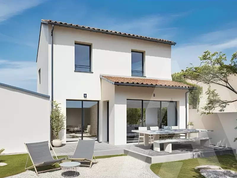 --- Visuel d'illustration. Le modèle est totalement adaptable à vos envies et besoins et personnalisable grâce à de nombreuses options de finition. Nous consulter pour plus d’informations. Le prix affiché comprend le coût du terrain et de la construction hors frais de notaire et taxes. Les annonces de terrains constructibles sont sélectionnées auprès de nos partenaires fonciers selon disponibilités et autorisation de publicité en vue de construire une maison neuve avec un Contrat de Construction de Maison Individuelle dans le cadre de la loi du 19/12/1990. Ces derniers sont soit des professionnels dûment habilités à la transaction immobilière, soit des particuliers. Les terrains sélectionnés sont disponibles à la date de la première parution de l’annonce. En aucun cas Maisons ARLOGIS ou ses collaborateurs ne sont propriétaires des terrains, ne jouent un rôle d’intermédiation ou de négociation sur la transaction et ne participent à la vente. Prix indiqués par nos partenaires fonciers.