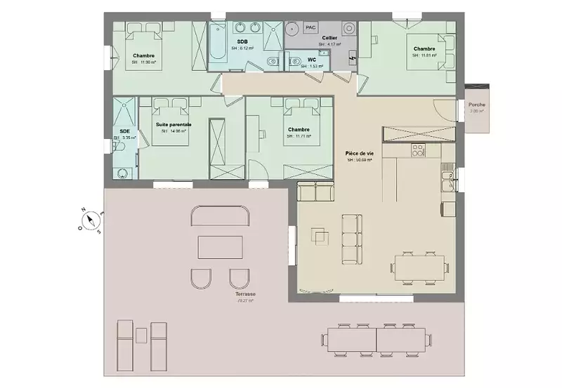 116m² optimisés avec 4 chambres dont une suite.