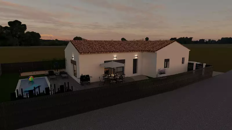Cette nouvelle construction répondra aux normes environnementales en vigueur (RE 2020). De plain-pied, elle compte 3 chambres dont une suite parentale complète avec son dressing et sa salle d'eau privative, une seconde salle de bains, une belle pièce de vie de plus de 50 m² avec cuisine ouverte et cellier attenant.