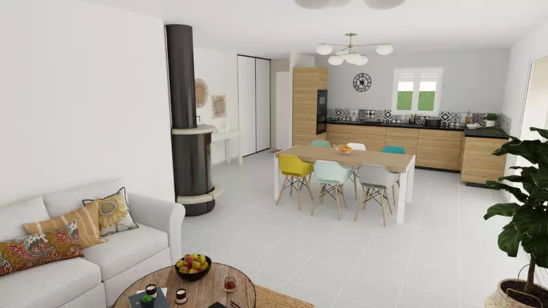 Accès direct à votre future terrasse et au jardin très bien exposé, garage accolé à la maison inclus.