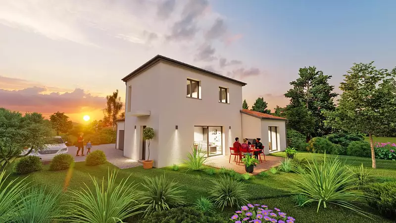 Le modèle est totalement adaptable à vos envies et besoins et personnalisable grâce à de nombreuses options de finition. Nous consulter pour plus d'informations. Le prix affiché comprend le coût du terrain et de la construction hors frais de notaire et taxes. Les annonces de terrains constructibles sont sélectionnées auprès de nos partenaires fonciers selon disponibilités et autorisation de publicité en vue de construire une maison neuve avec un Contrat de Construction de Maison Individuelle dans le cadre de la loi du 19/12/1990. Ces derniers sont soit des professionnels dûment habilités à la transaction immobilière, soit des particuliers. Les terrains sélectionnés sont disponibles à la date de la première parution de l'annonce. En aucun cas Maisons ARLOGIS ou ses collaborateurs ne sont propriétaires des terrains, ne jouent un rôle d'intermédiation ou de négociation sur la transaction et ne participent à la vente. Prix indiqués par nos partenaires fonciers. Visuel d'illustration. Le modèle est totalement adaptable à vos envies et besoins et personnalisable grâce à de nombreuses options de finition. Nous consulter pour plus d’informations. Le prix affiché comprend le coût du terrain et de la construction hors frais de notaire et taxes. Les annonces de terrains constructibles sont sélectionnées auprès de nos partenaires fonciers selon disponibilités et autorisation de publicité en vue de construire une maison neuve avec un Contrat de Construction de Maison Individuelle dans le cadre de la loi du 19/12/1990. Ces derniers sont soit des professionnels dûment habilités à la transaction immobilière, soit des particuliers. Les terrains sélectionnés sont disponibles à la date de la première parution de l’annonce. En aucun cas Maisons ARLOGIS ou ses collaborateurs ne sont propriétaires des terrains, ne jouent un rôle d’intermédiation ou de négociation sur la transaction et ne participent à la vente. Prix indiqués par nos partenaires fonciers.