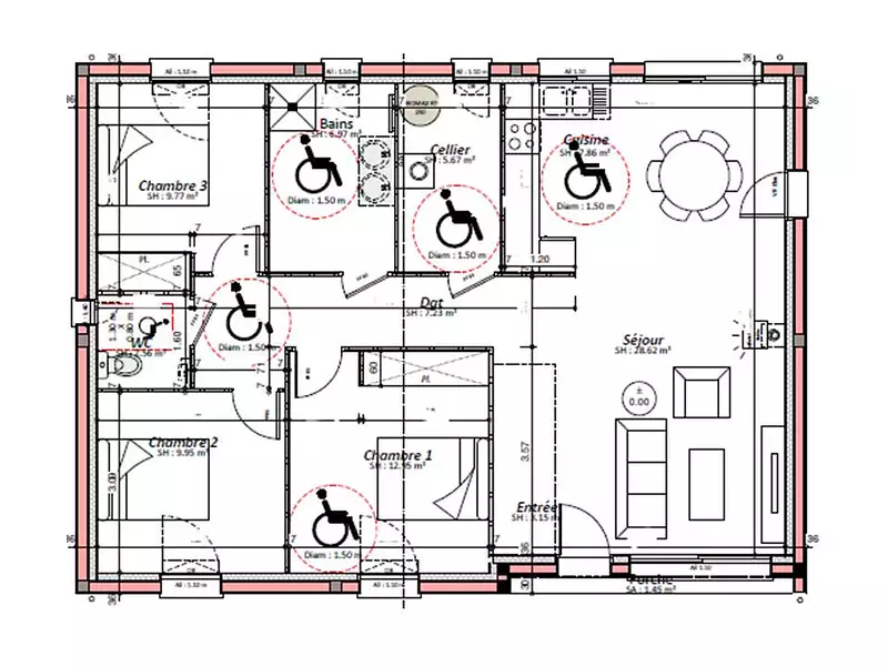 Teloché : maison de 5 pièces (94 m²) à vendre , Normes Handicapés