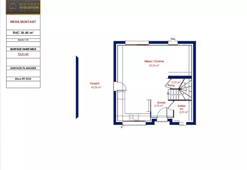 Cette maison R+1 vous est proposée sur une surface habitable de 72,31 m².