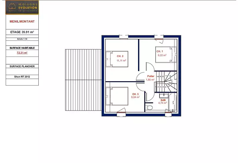 Proposée par MAISONS EVOLUTION – 5 pièces - 3 chambres - terrain 405 m²