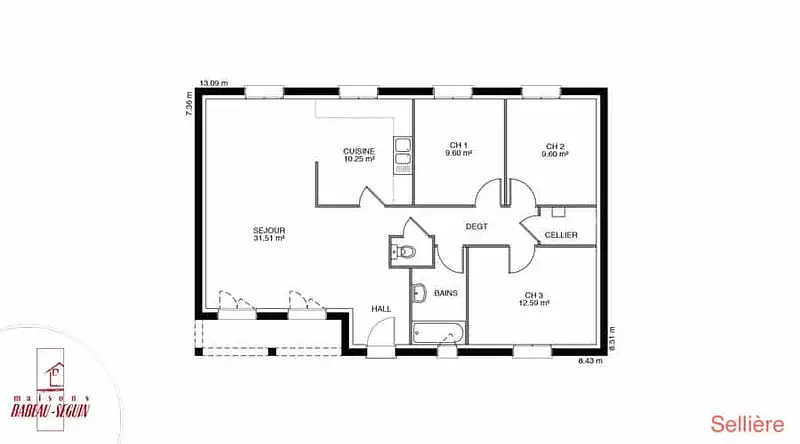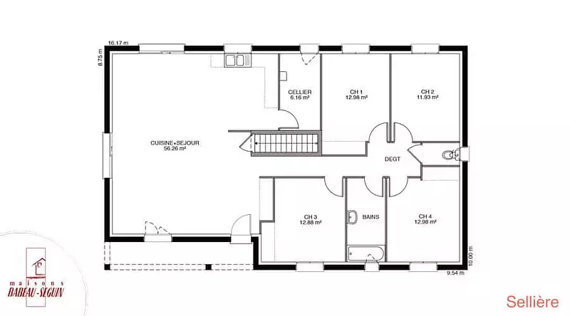 Sur ce terrain, nous vous proposons cette maison neuve, le modèle Sellière, conçue par Babeau-Seguin, constructeur offrant le meilleur rapport qualité/prix du marché. Avec une surface de 108 m², cette maison de plain-pied à combles perdus est idéale pour les familles grâce à ses 4 chambres et 4 pièces.