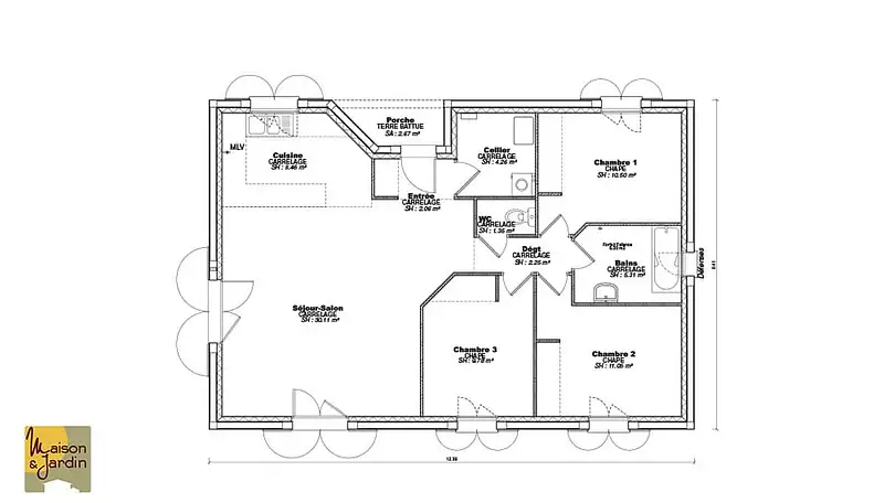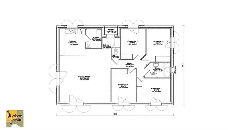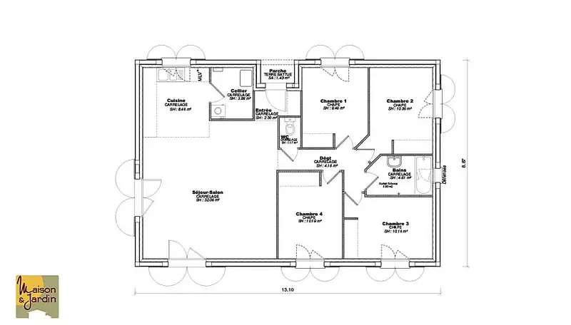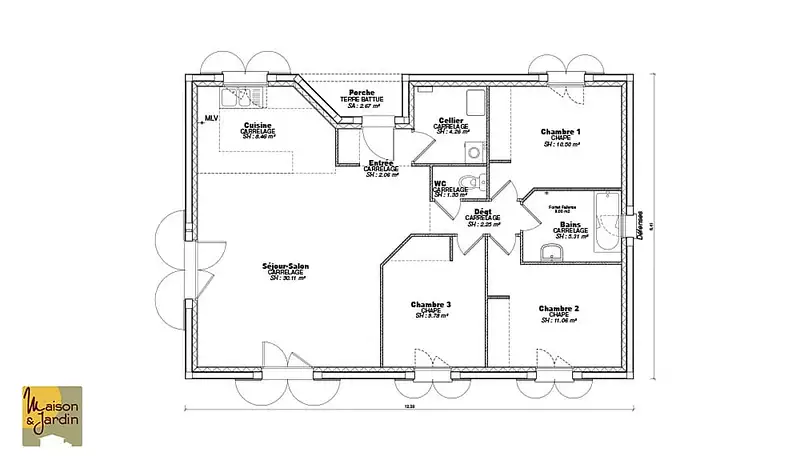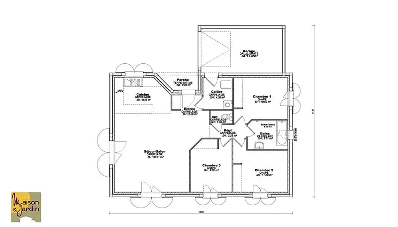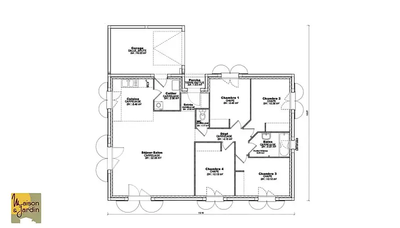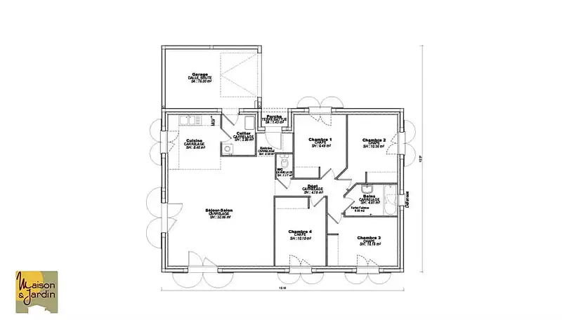 Proposée par MAISON ET JARDIN – 4 pièces - 3 chambres - terrain 1 095 m²