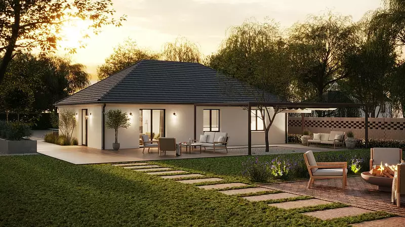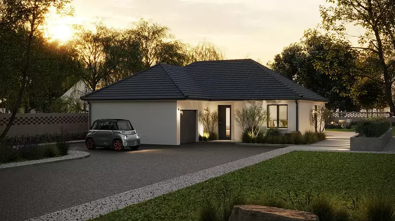 La Lucia se distingue par sa toiture élégante, disponible en versions 4 ou 6 versants, qui ajoute un cachet indéniable à l'architecture générale. Son agencement en forme de L permet non seulement une séparation naturelle entre l'espace jour et l'espace nuit, mais aussi l'intégration harmonieuse d'un garage intégré, répondant ainsi à la demande populaire pour des maisons alliant esthétique et praticité.