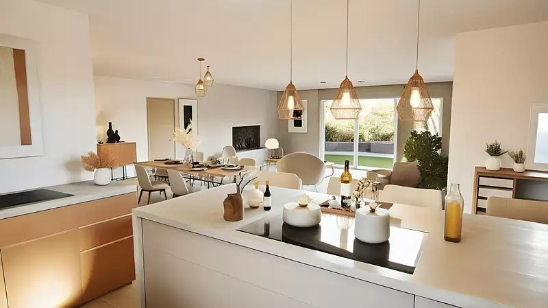La commune propose des services de proximité essentiels, tels que des commerces locaux, des écoles et des services de santé, ce qui facilite la vie quotidienne des habitants. Visuel d'illustration. Le modèle est totalement adaptable à vos envies et besoins et personnalisable grâce à de nombreuses options de finition. Nous consulter pour plus d’informations. Le prix affiché comprend le coût du terrain et de la construction hors frais de notaire et taxes. Les annonces de terrains constructibles sont sélectionnées auprès de nos partenaires fonciers selon disponibilités et autorisation de publicité en vue de construire une maison neuve avec un Contrat de Construction de Maison Individuelle dans le cadre de la loi du 19/12/1990. Ces derniers sont soit des professionnels dûment habilités à la transaction immobilière, soit des particuliers. Les terrains sélectionnés sont disponibles à la date de la première parution de l’annonce. En aucun cas Maisons ARLOGIS ou ses collaborateurs ne sont propriétaires des terrains, ne jouent un rôle d’intermédiation ou de négociation sur la transaction et ne participent à la vente. Prix indiqués par nos partenaires fonciers.