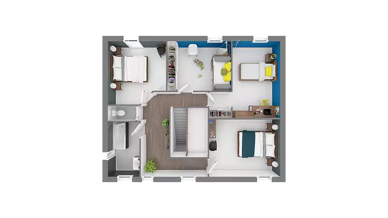 Prix indiqué hors frais annexes, aménagements extérieurs et finitions intérieures. Ce prix n'inclut pas les frais de notaire sur le terrain. Terrain proposé par un partenaire foncier, sous réserve de disponibilité. Projet réalisé dans le cadre d'un Contrat de Construction de Maison Individuelle (CCMI). Visuel non contractuel.