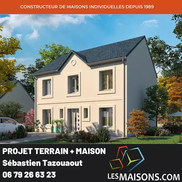 Prix indiqué hors frais annexes, aménagements extérieurs et finitions intérieures. Ce prix n'inclut pas les frais de notaire sur le terrain. Terrain proposé par un partenaire foncier, sous réserve de disponibilité. Projet réalisé dans le cadre d'un Contrat de Construction de Maison Individuelle (CCMI). Visuel non contractuel.
