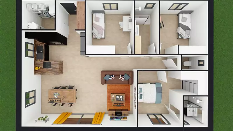 Je vous propos ici, un projet pour une maison de 87m² composé de trois chambres dont une suite parentale et une pièce de vie lumineuse de 40m².